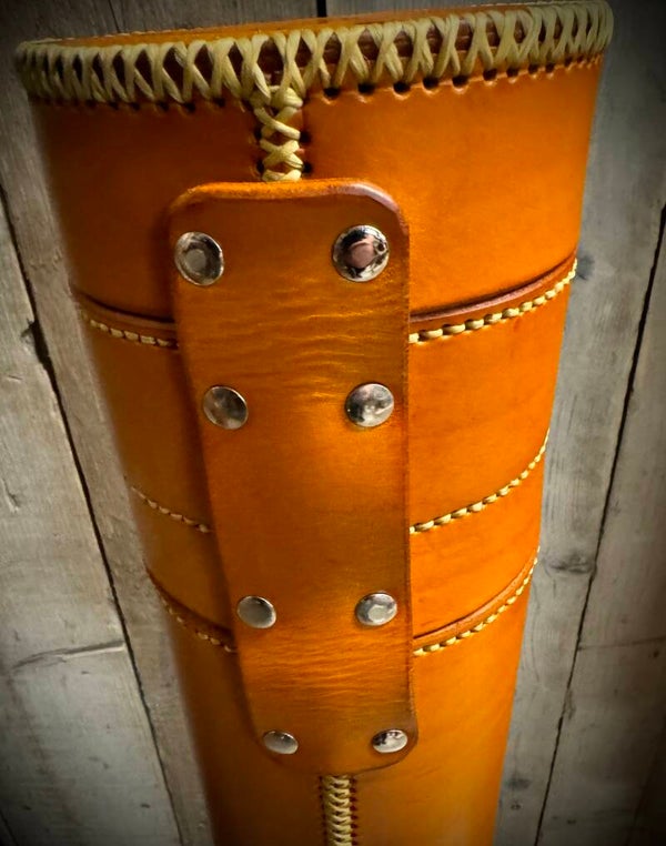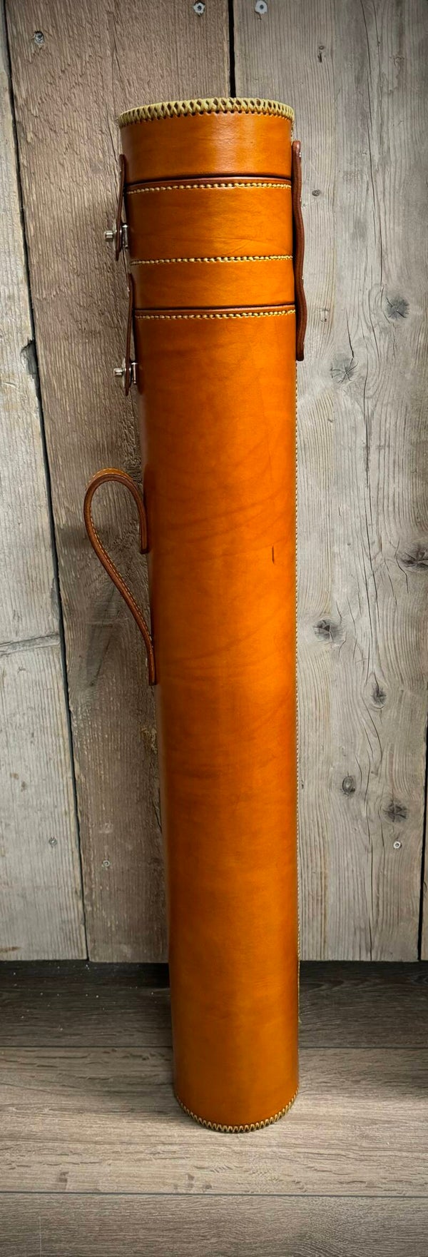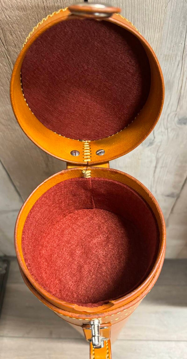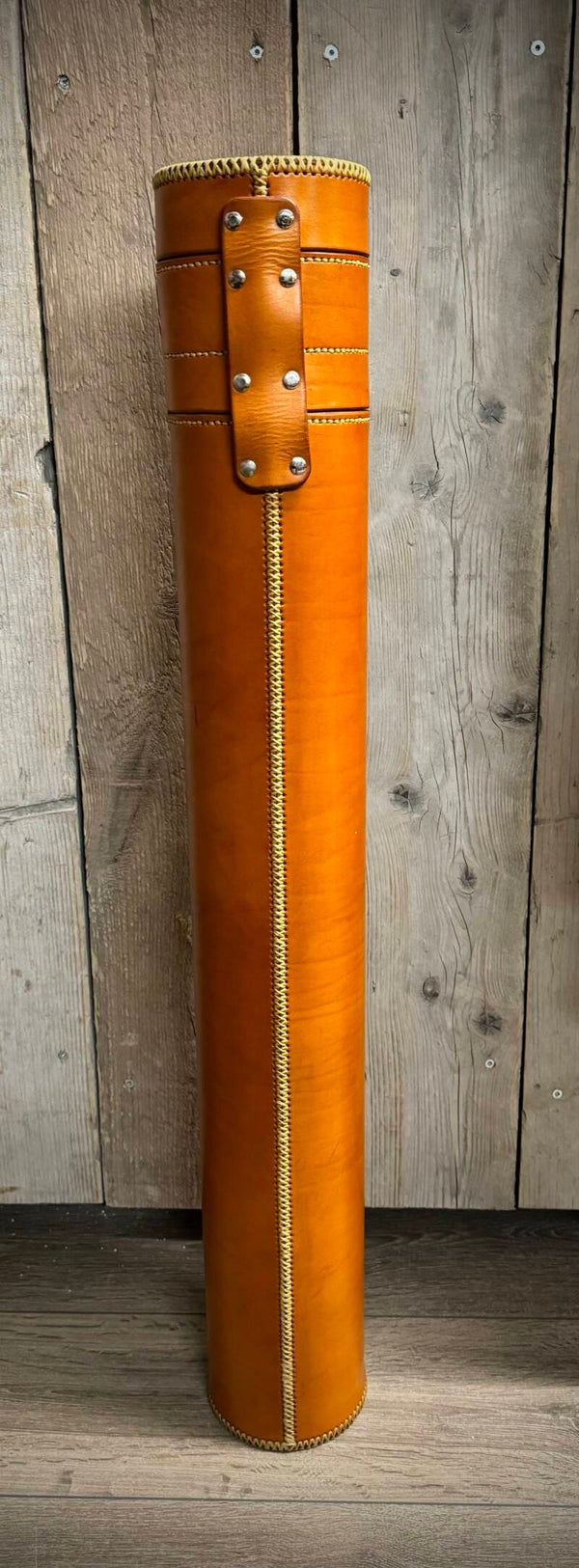 Biljartkoker dia.125 bruin tan, biljarter op deksel en Marlboro rood binnenwerk.blond afgenaaid.