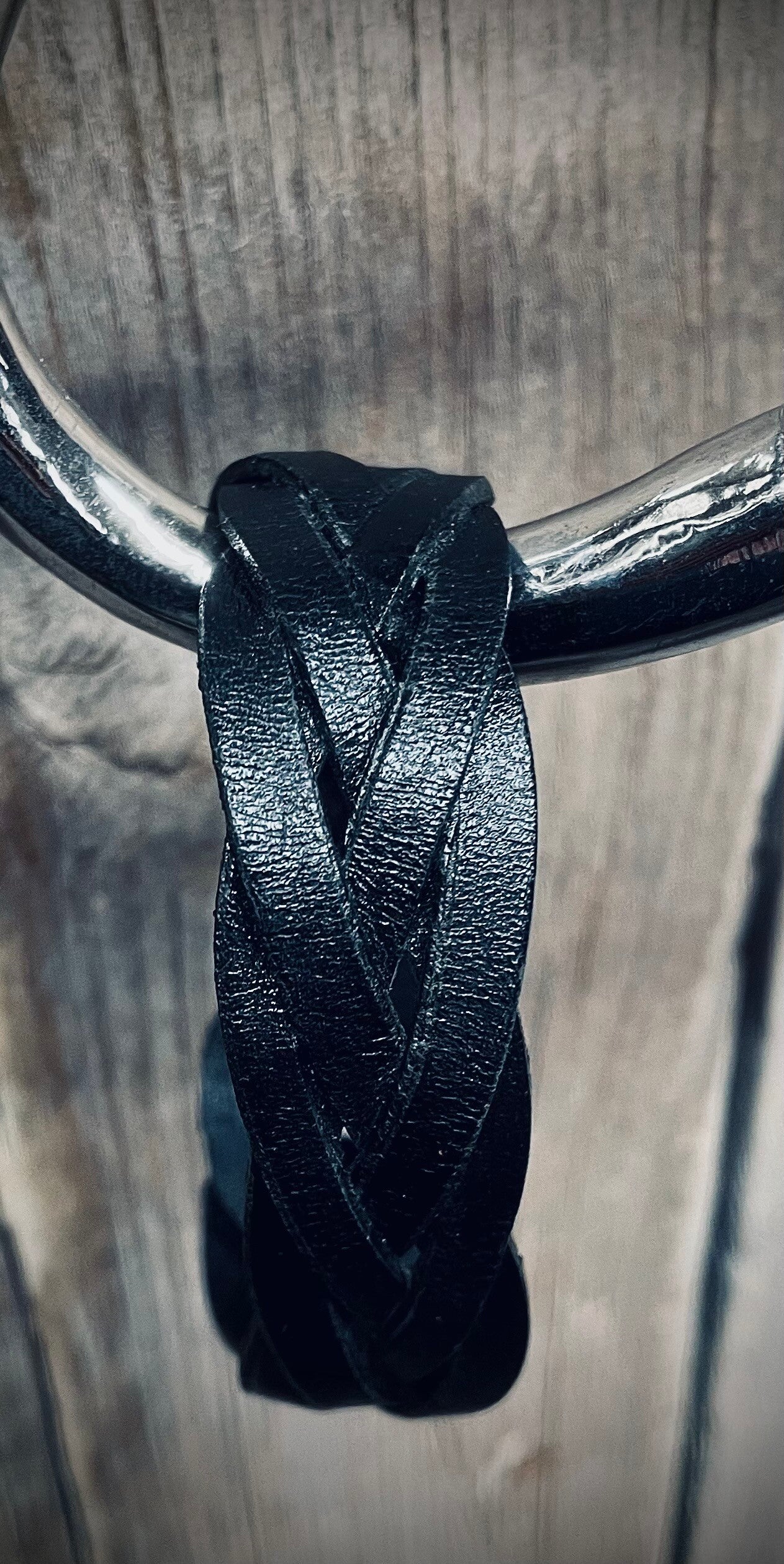Deze originele armband gemaakt van 2.5mm soepel dik leer, heeft een breedte van 2cm, is gevlochten met 5 strengen.