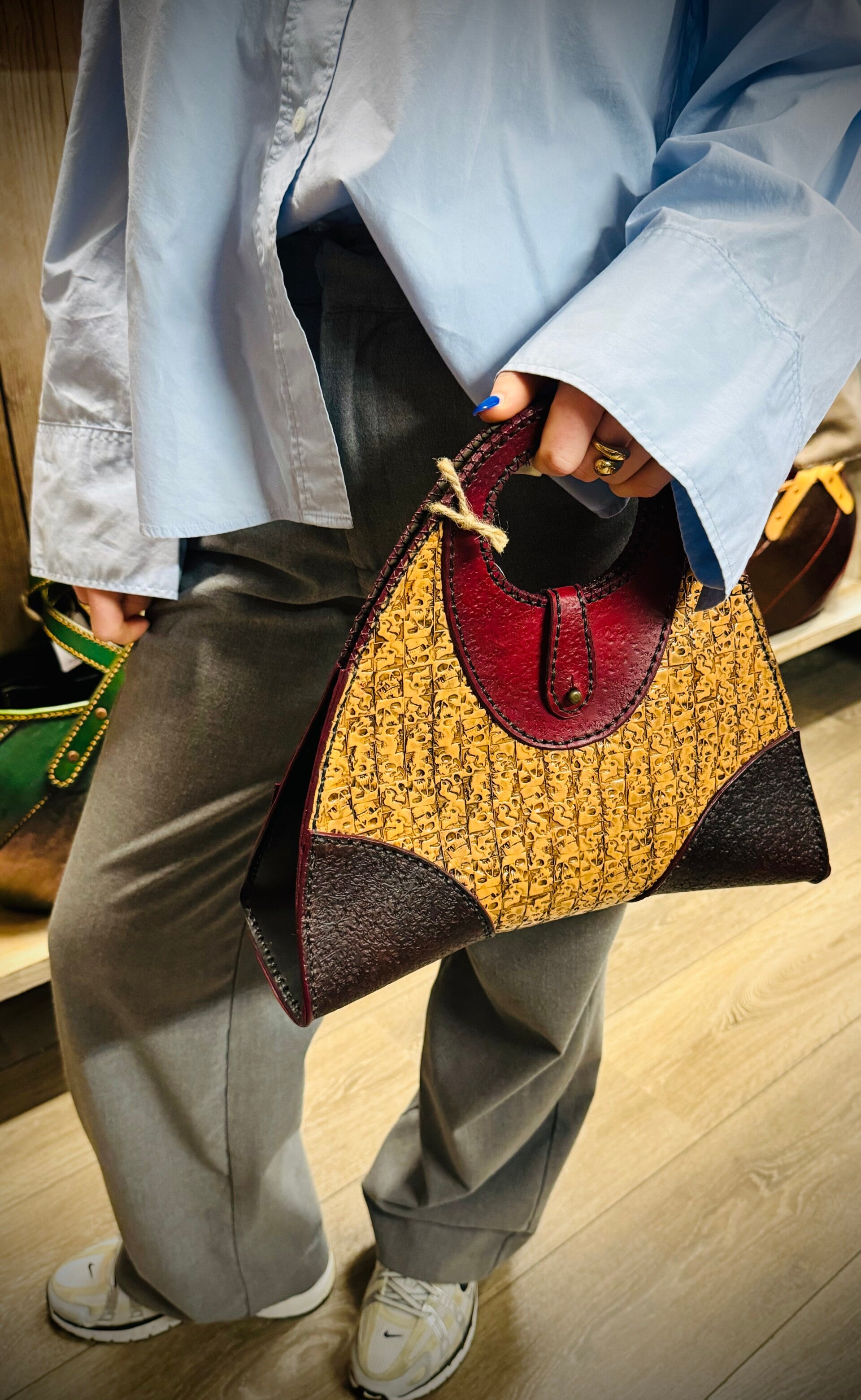 Zeer elegant tasje met een verrassend patroon, prachtig gevoerd.