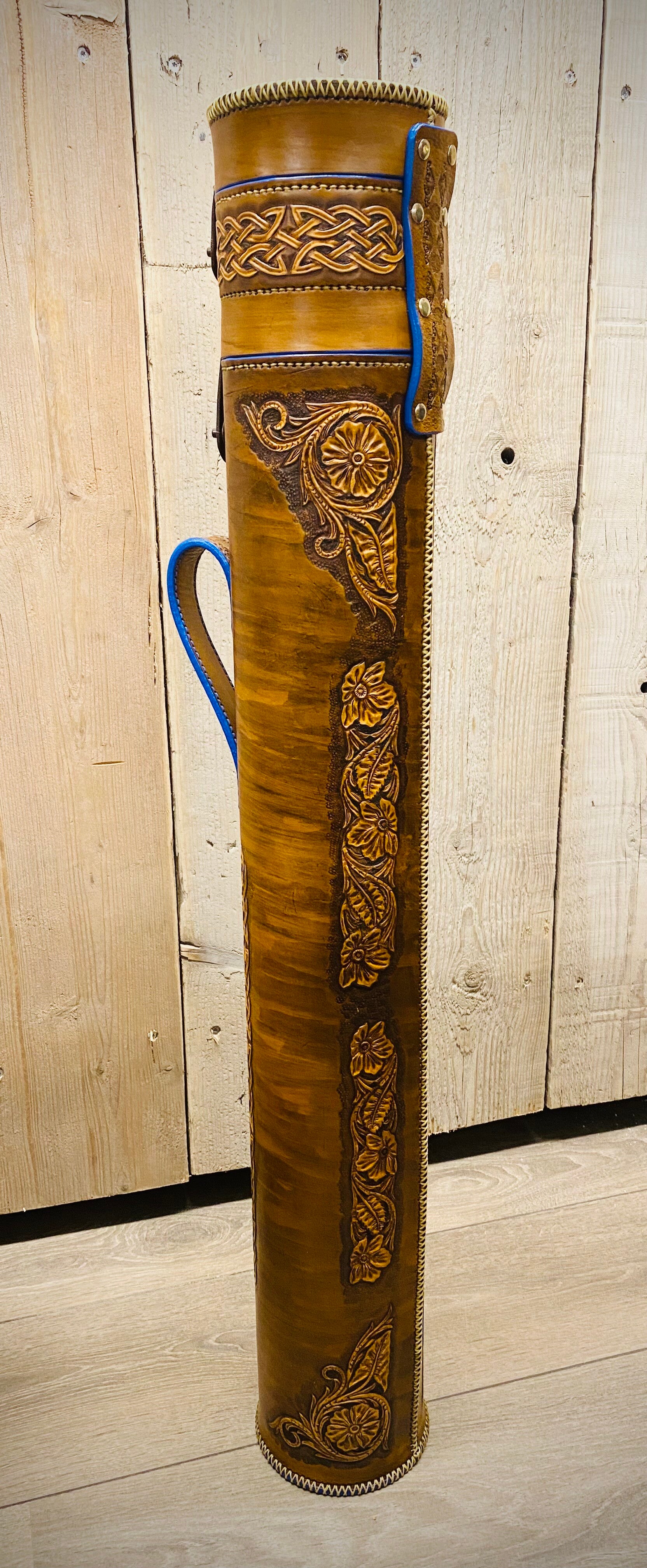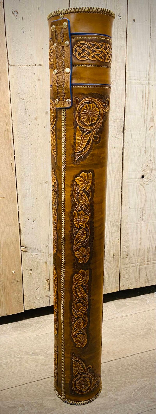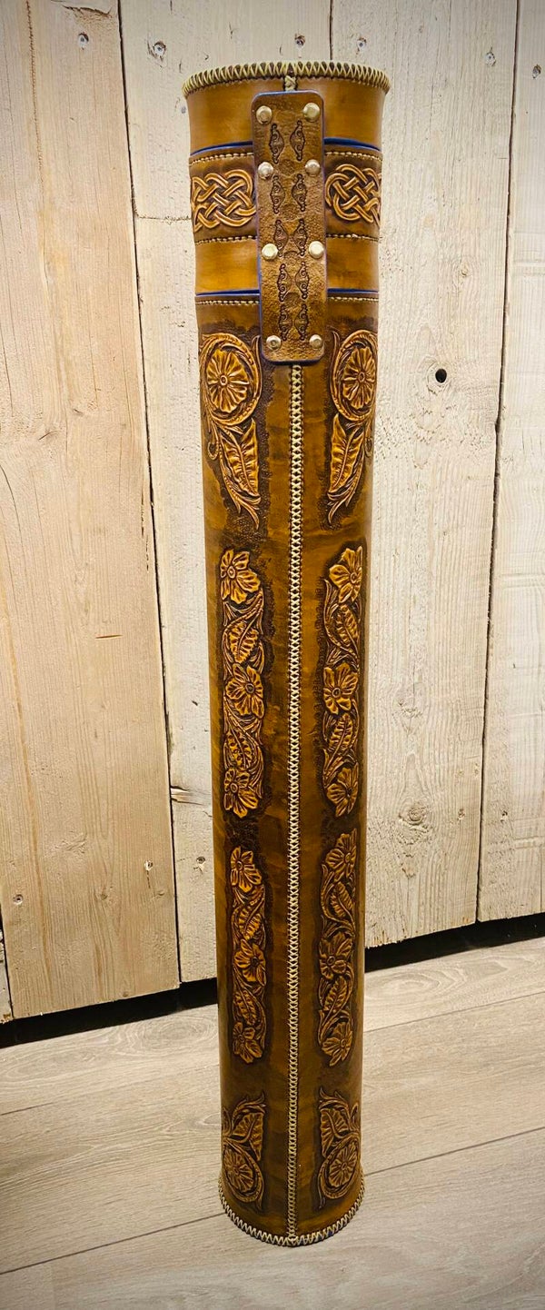 Deze biljartkoker dia.125 heeft als thema Celtic and flowers, alsook de biljarter op het deksel.