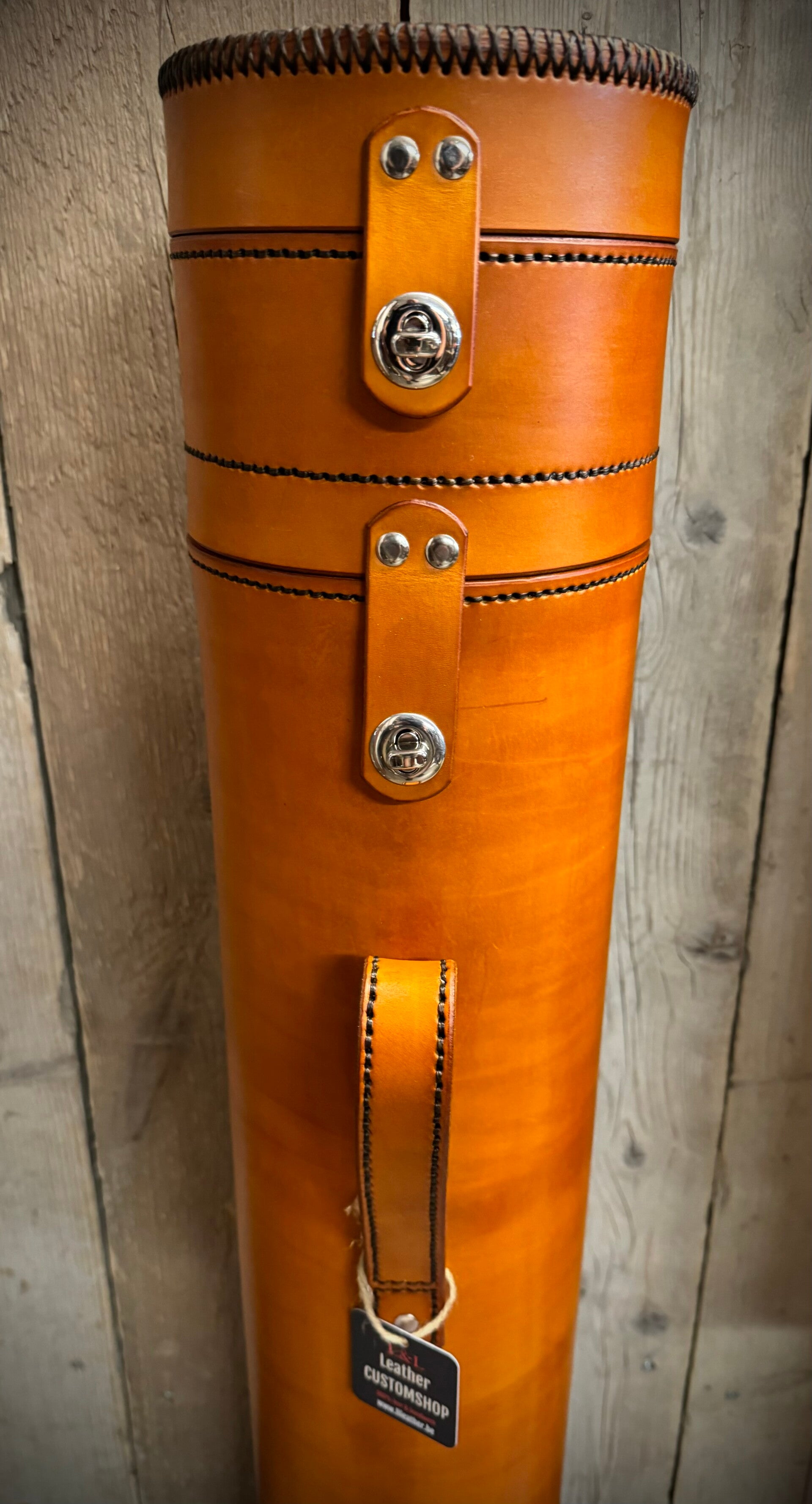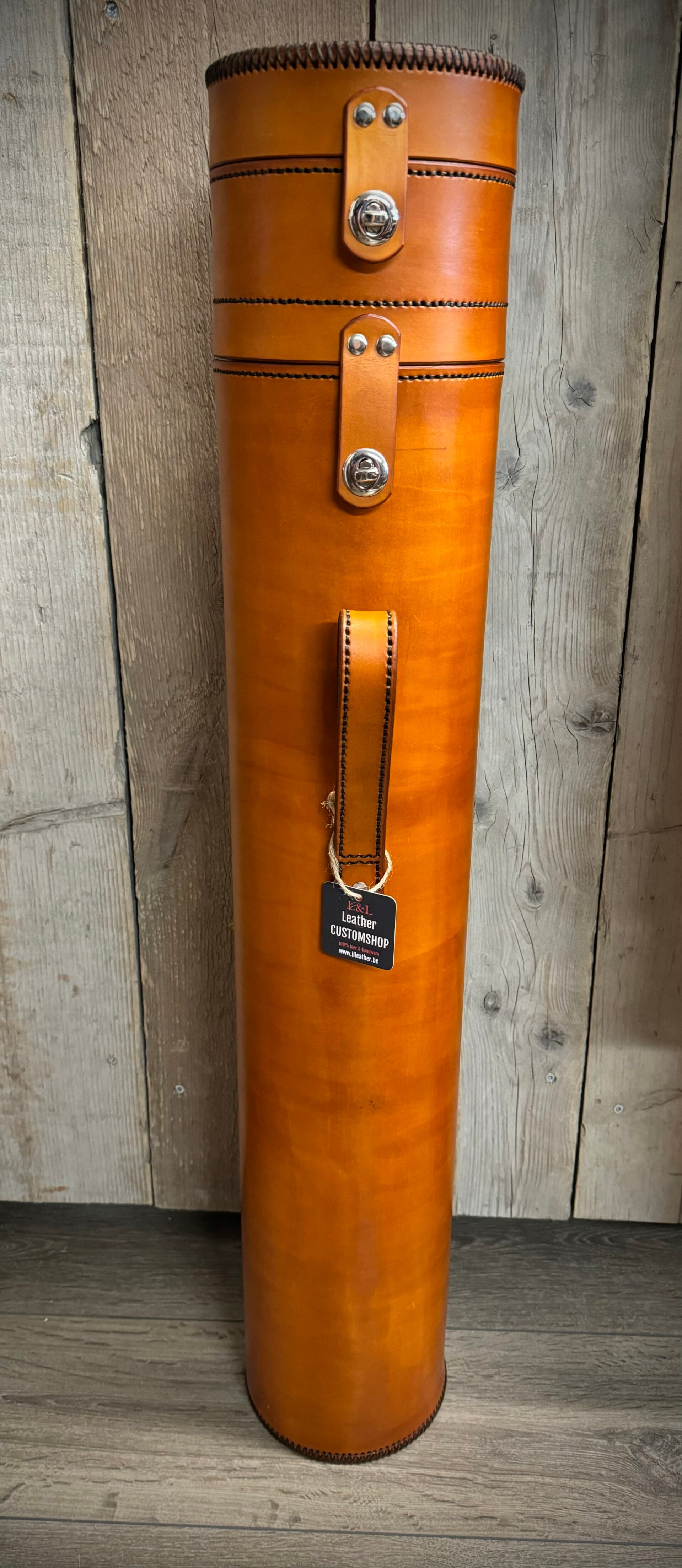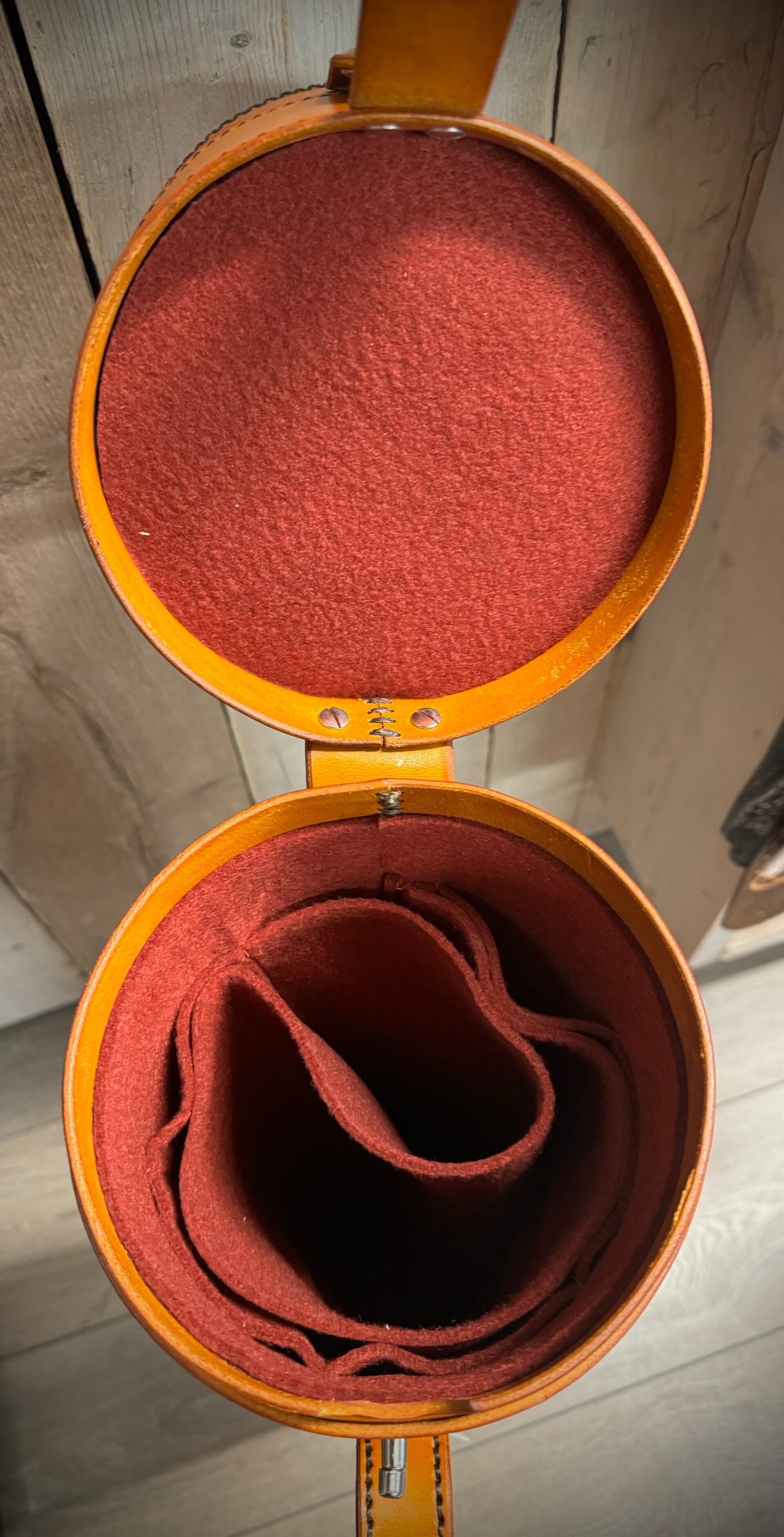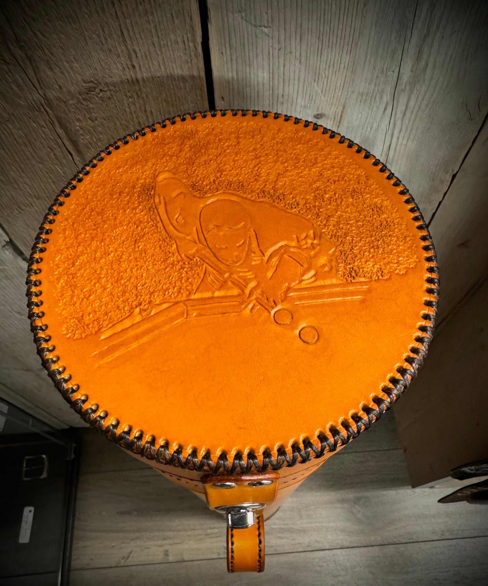 Biljartkoker saddle tan dia.160 Marlborro rood binnenwerk, biljarter op het deksel.