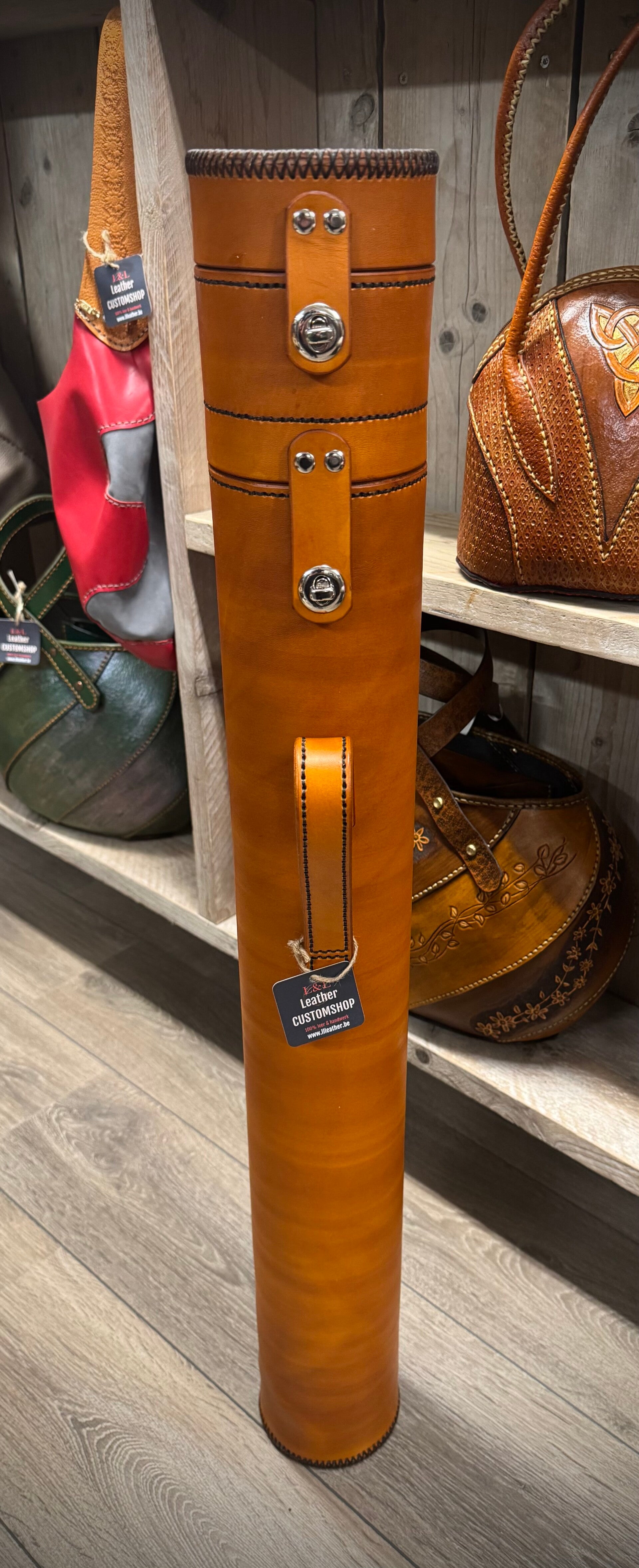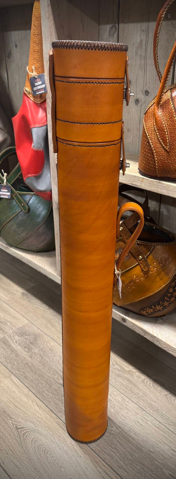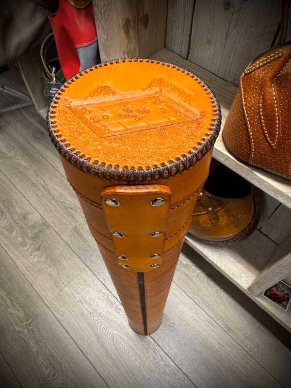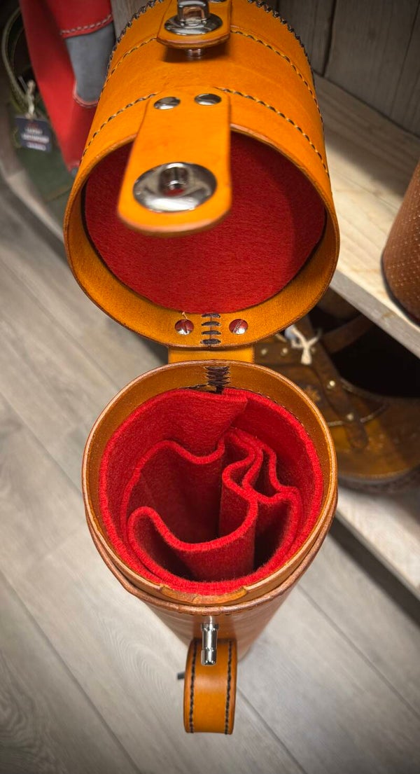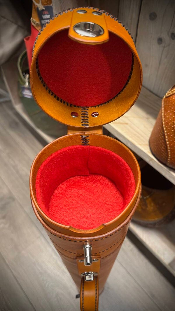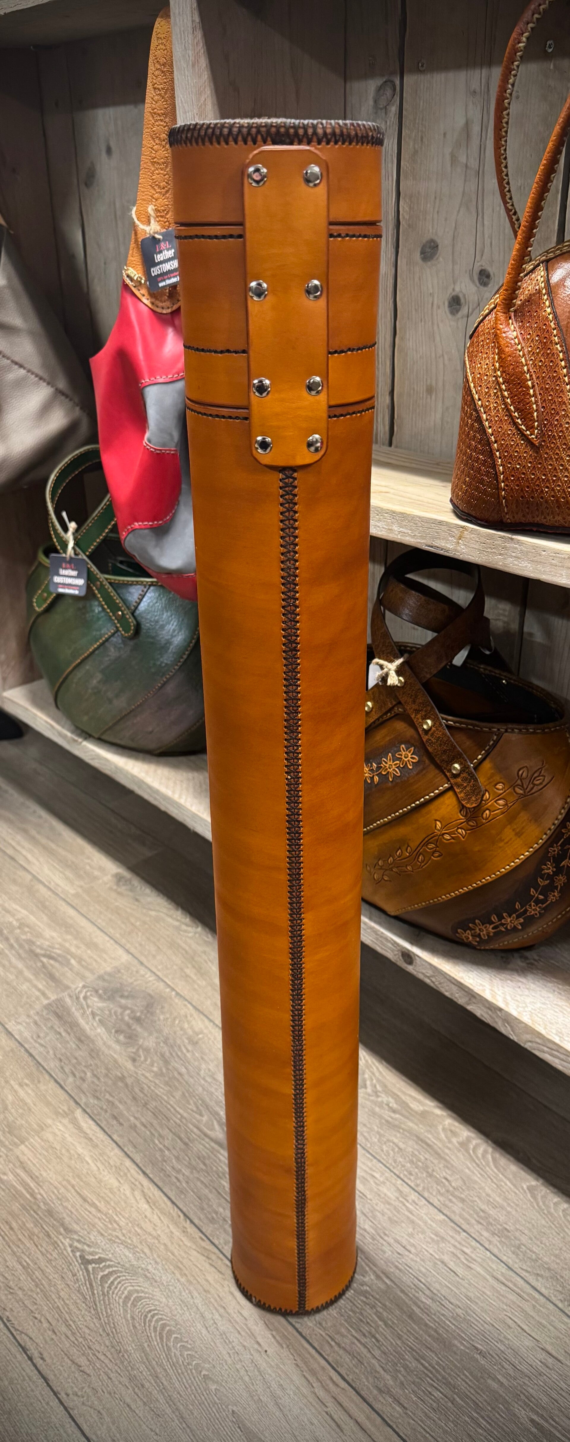 Standaard rood binnenwerk en donkerbruin afgenaaid.